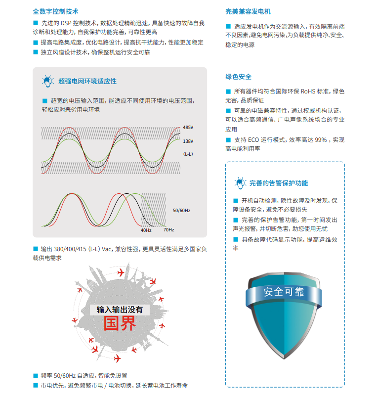 • 科华® YTR33-J系列 UPS 是在线式高性能不间断电源,是专为政府、教育金融、通信、保险、交通、税务、证券、能源等系统的网络计算机房和小型智能设备(如测量装置、工业自动化设备等)、精密仪器等设计的高性能在线式 UPS,尤为适用于恶劣的电网环境。适用场景IT 机房小型智能设备精密仪器医疗设备